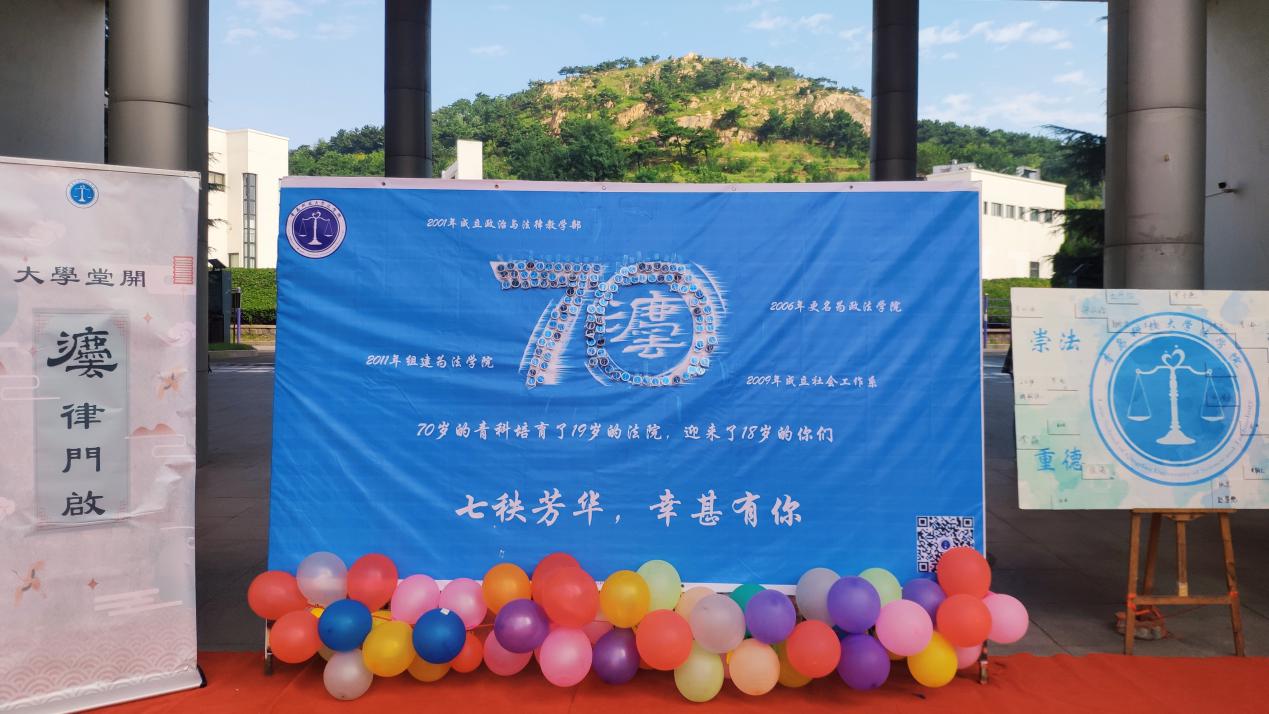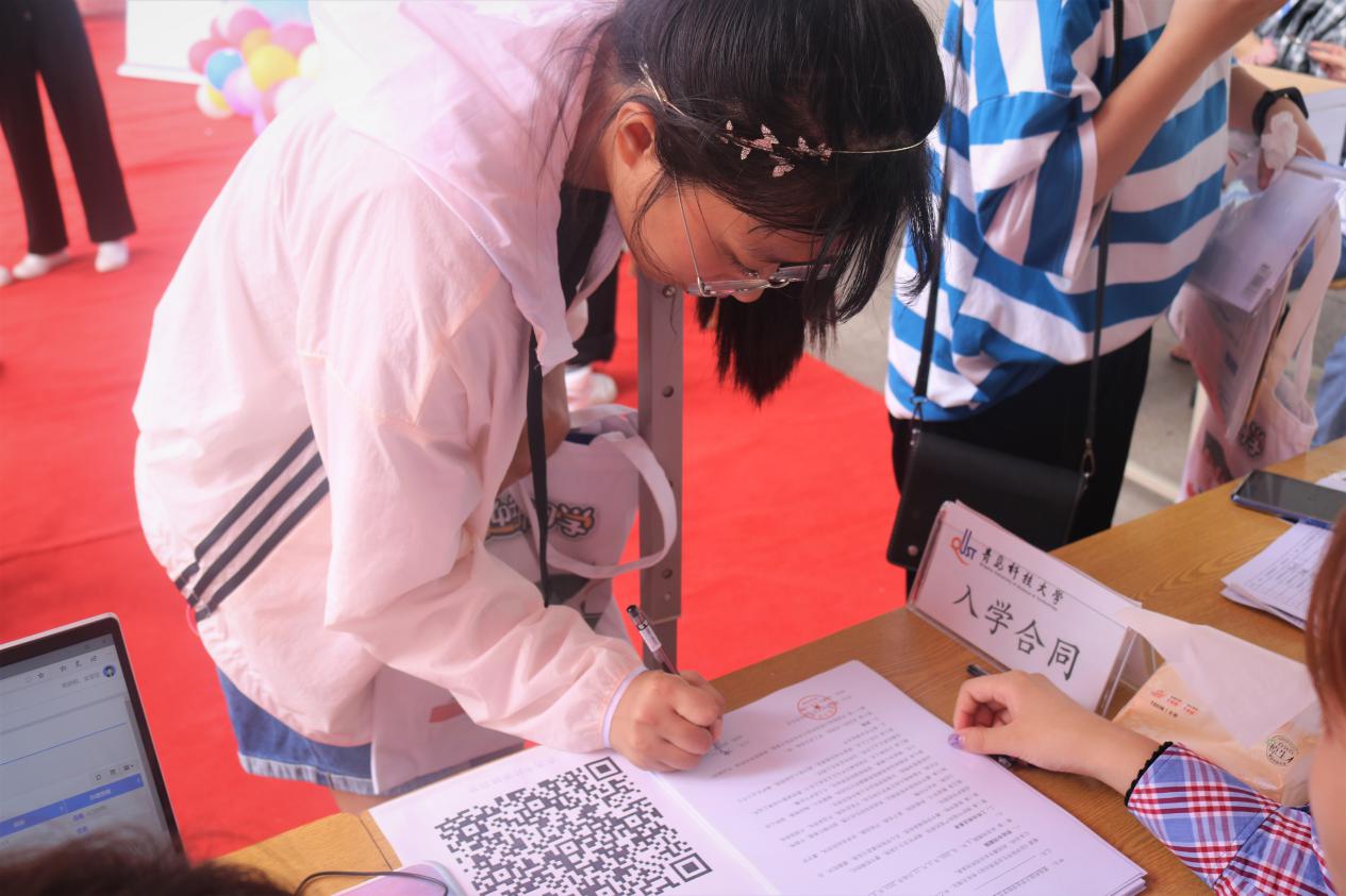 “甲方:公司员工会;乙方:新同学。为使乙方能够在大学期间成为一个有理想、有本领、有担当的优秀人才,双方在平等自愿的基础上,同意签订本合同。”学院员工会为2020级新生量身订制了一份别出心裁的“新生入学合同”,让新同学对自己专业有一个初步了解的同时,也助力员工提升规矩规则意识,培养公司员工契约精神,增强同学们的职业认同感。报到点设立“大学堂开,法律门启”的合影墙和考研风云榜,以司法考试、考研考公、社工师的榜样事例,让新生提前感受进入法律之门的使命和担当,巩固专业认同教育。