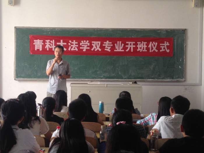 开班仪式上,赵玉增代表学院欢迎大家选择法学双专业,欢迎大家加入到太阳集团城8722这个大家庭。他说同学们的加入,必将为太阳集团城8722注入新鲜血液,充实新的力量;他向同学们介绍了太阳集团城8722的教学科研情况和团队力量;他希望同学们能充分利用第二专业这个平台,充实和完善自己,成为一名优秀的法律人。张福德根据自己多年的治学经验,和同学们交流了法学的学习方法,他希望同学们学了法律以后,要学会用法律思维来分析和解决社会问题。针对同学们时间紧张,学业繁忙的情况,于晋和大家谈了如何合理分配时间,同时搞好本专业业和第二专业的学习。卢海波就法学双专业课程设置、日常教学安排、班级组织管理、双向沟通和交流等方面和大家做了交流。