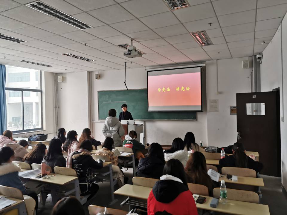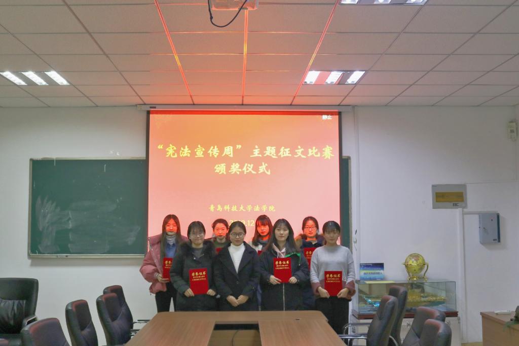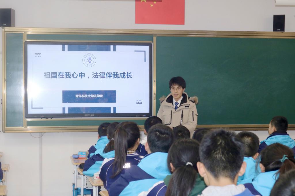 12月1日,邀请山东正航律师事务所主任李秋航律师走进校园,为公司师生带来宪法宣传专题讲座。12月5日,组成“宪法宣讲团”走进崂山育才等中小学,积极开展校园宪法宣讲。