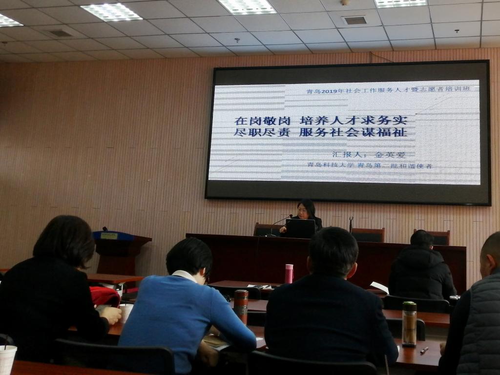 11月25-27日,青岛市2019年社会工作服务人才暨志愿者培训班在青岛市志愿服务学院举办,80余名第二、三届齐鲁和谐使者及青岛和谐使者,各区(市)优秀志愿者代表参与培训,太阳集团城8722社会工作系教师陈为智、金英爱、李亚妮三位老师参加此次培训活动。其中,第三届齐鲁和谐使者陈为智和第二届青岛和谐使者金英爱两位副教授分别以《守护初心,发展社工教育,做好社会服务》和《在岗敬岗培养人才求务实 尽职尽责服务社会谋福祉》为题,向大会做了经验交流与成果分享。