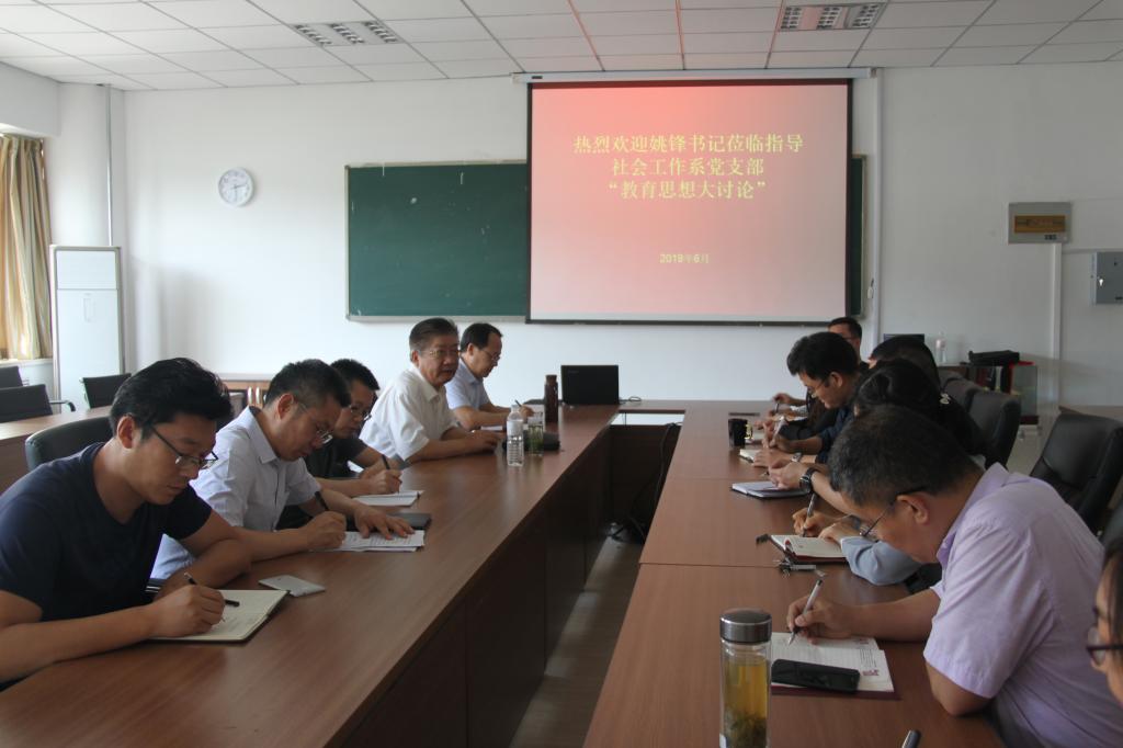6月11日下午,公司党委常委、纪委书记姚锋参加太阳集团城8722社会工作系党支部教育思想大讨论,与支部全体党员一道就社会工作专业的建设发展问题展开深入研讨。公司领导班子成员列席讨论。