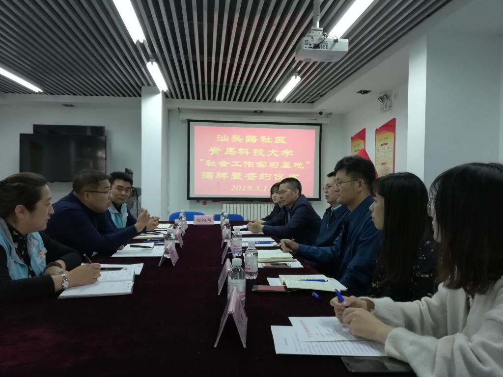 5月13日,公司与珠海路街道“社会工作实习基地”揭牌暨签约仪式在汕头路社区举办。公司党总支书记朱敬义,经理助理陈为智,珠海路街道党工委副书记、办事处主任盛鹏,汕头路社区党委书记蔺忠波出席了仪式。社会工作系教师王卫国、李亚妮,居委会工作人员居委会张波、朱明第,公司社会工作专业员工代表共同参加了仪式。