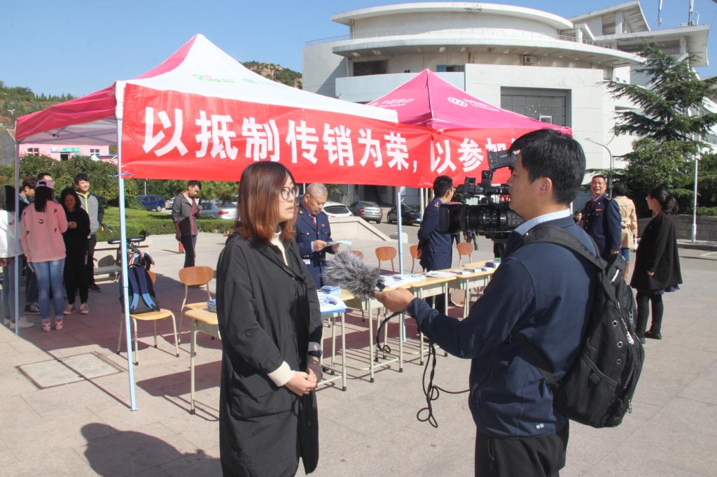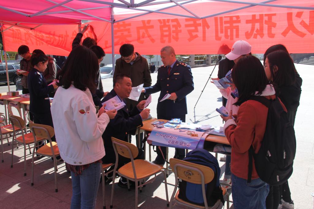 挂牌仪式后,“打击传销联络站”在崂山校区南苑餐厅东门举办了“抵制传销”宣传教育活动,公司员工志愿者与崂山区市场监管局工作人员在活动现场进行了宣传材料的发放,并针对传销的特征、预防方法、进行了现场答疑。