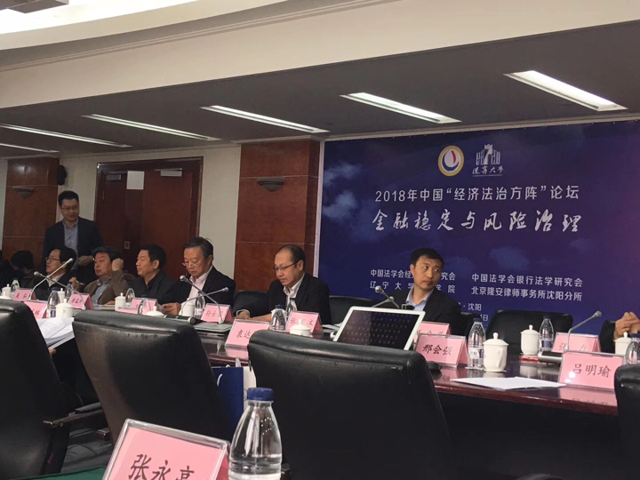 10月14日上午,由中国法学会经济法学研究会、中国法学会银行法学研究会主办,辽宁大学公司与北京隆安律师事务所沈阳分所承办的2018年中国“经济法治方阵”论坛在辽宁大厦会议室隆重举行。