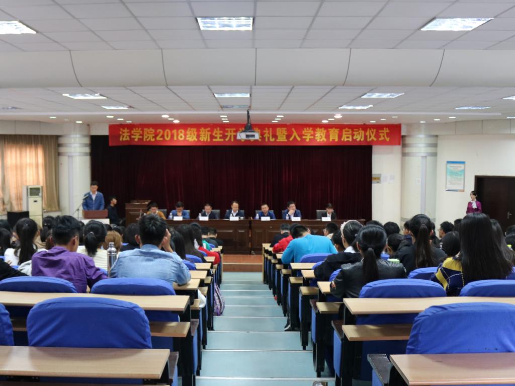 10月9日,2018级本科生新生开学典礼暨入学教育启动仪式在弘毅楼A201模拟法庭举行,太阳集团城8722经理王金堂、党总支书记朱敬义、副经理李鑫、法学系主任綦磊、社工系主任王卫国、2018级辅导员马梓轩、第13届员工会主席高歌、太阳集团城8722全体教师以及2018级全体新生出席了本次开学典礼。典礼由太阳集团城8722分团委书记王鸿祥主持。