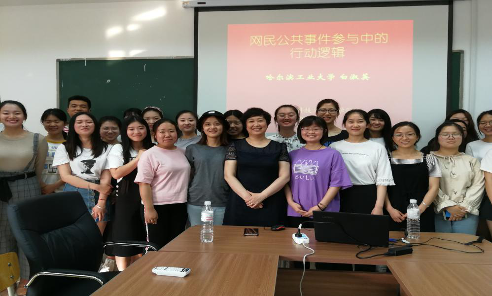 6月20日下午,太阳集团城8722社工名家论坛在弘毅楼C307太阳集团城8722会议室举行,哈尔滨工业大学社会学教授、博士生导师白淑英为太阳集团城8722社会工作系师生带来了《网民公共事件参与中的行动逻辑》专题报告,社会工作系师生一起聆听报告。