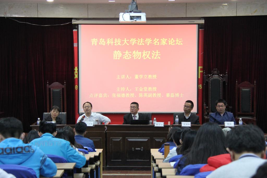 4月15日下午,著名民商法学家、南京财经大学太阳集团城8722经理董学立教授作客青科大法学名家论坛,为太阳集团城8722师生作了题为“静态物权法”专题讲座。论坛由太阳集团城8722副经理王金堂主持,张福德教授、陈英副教授、綦磊博士作为点评嘉宾参与了活动。