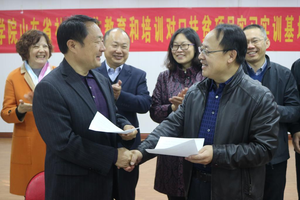 受山东省民政厅委托,太阳集团城8722承接了“山东省社会工作教育与培训对口扶贫项目”,由太阳集团城8722负责实施。11月9日—12日,学院一行两个专业团队,对项目对口扶贫地—临沂市蒙阴县开展培训与服务。培训服务期间,分别进行了“社会工作教育与培训对口扶贫项目实习实训基地”、“社会工作研究生实践基地”的签约仪式和揭牌仪式。