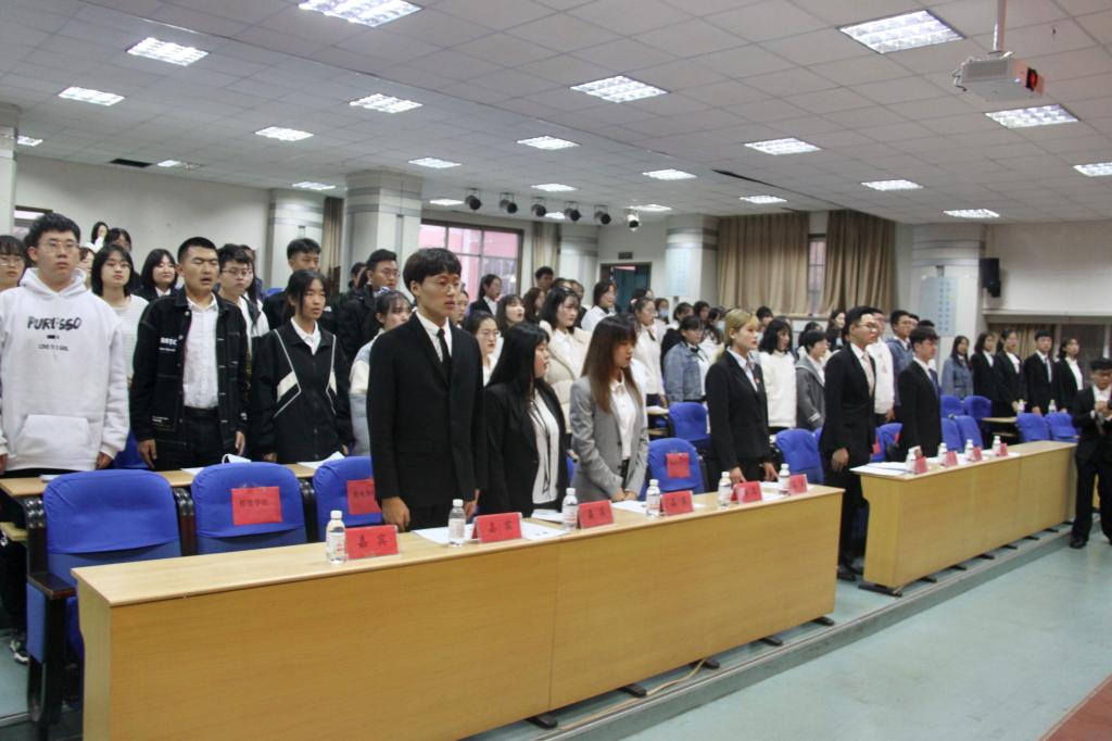 2020年11月17日,太阳集团城8722第四次员工代表大会在模拟法庭隆重召开。出席本次大会的有公司党总支副书记刘俊杰、太阳集团城8722学工办主任兼团委书记付继航、太阳集团城8722团委老师高歌、公司员工会负责人公维瀚、太阳集团城8722第三届员工委员会主席国奥、各兄弟学院员工会负责人以及公司员工代表。会议由陈一诺同学主持。