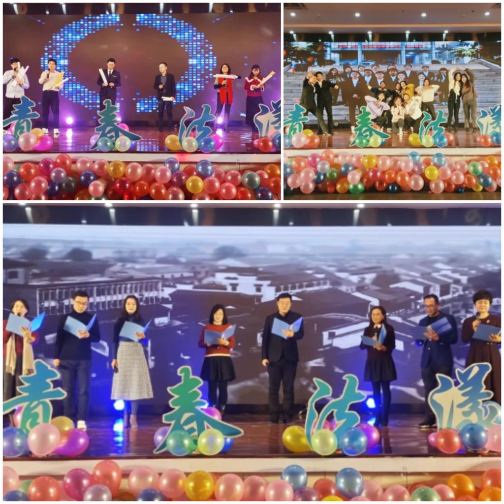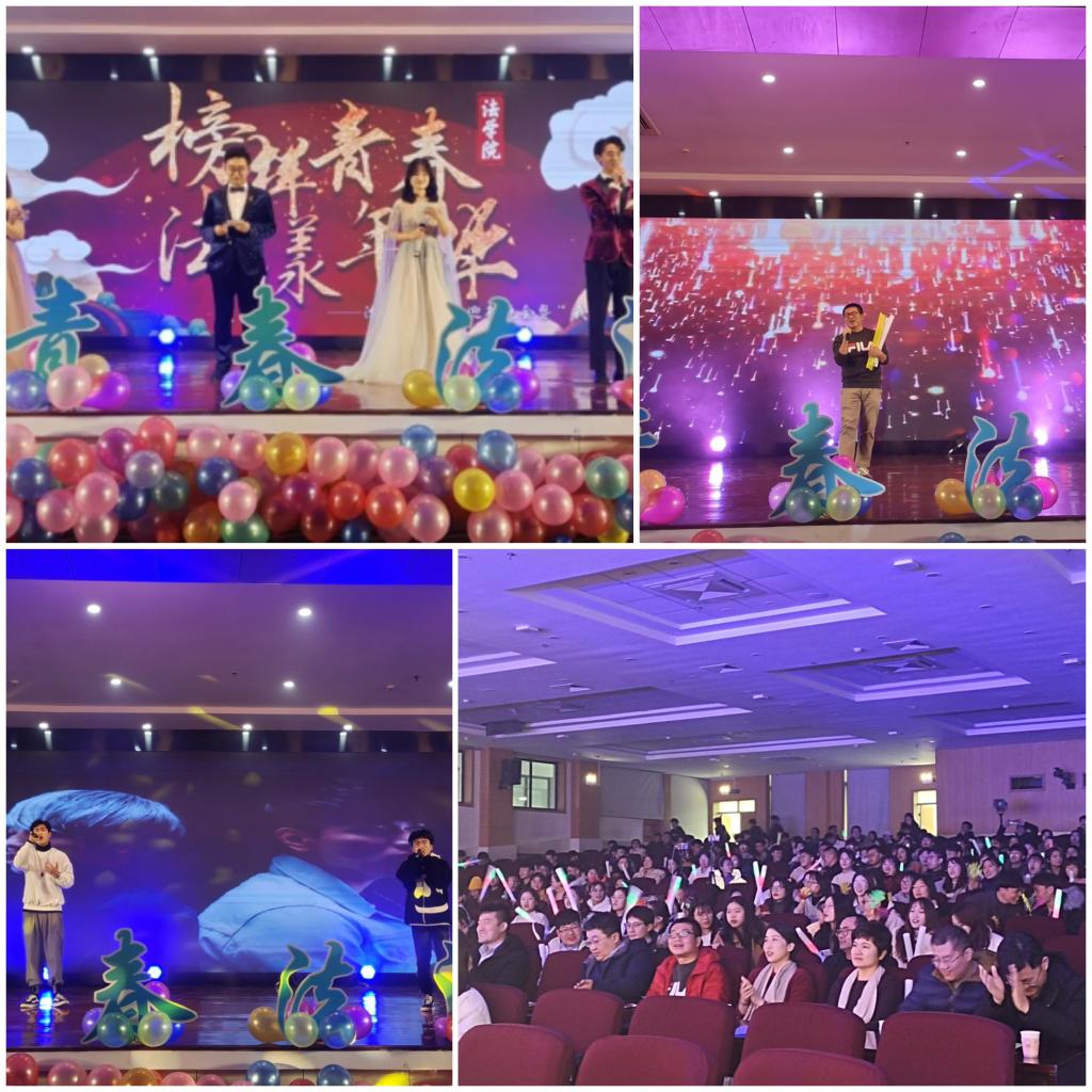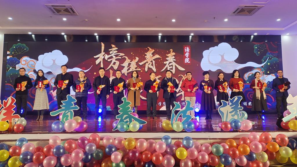12月23日晚,太阳集团城8722“榜样青春,法漾年华”迎新晚会暨“我身边的榜样”颁奖典礼于崂山校区第二报告厅如期举行。青岛市教育局处长刘俊杰、校团委副书记陈兵、党委董事长办公室高教研究室副主任王鸿祥、传媒学院辅导员金莹莹、太阳集团城8722经理王金堂、党总支书记李卉、副经理陈为智与学院教师、员工、兄弟学院员工会负责人300余人共同观看了晚会。