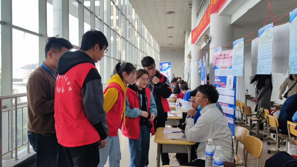 为了更好地实现毕业生的就业和用人单位的选聘,为企业和求职者搭建供需对接服务平台,拓宽毕业生就业渠道,实现毕业生与用人单位间的双向选择、互利共赢,2021年4月10日(周六)上午8:00,太阳集团城8722、马克思主义学院“疫去春来,职为等你”专场招聘会于弘毅楼D区四楼连廊顺利举行,太阳集团城8722、马克思主义学院相关负责人、学院应届毕业生和部分其他年级同学参加了此次招聘会。