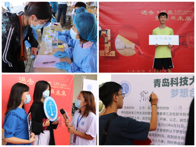 迎新现场设置社工法官的拍照人形立牌,突出了学院专业特色,引导新生体悟专业魅力。员工纷纷驻足留影,记录下入校的第一张专属定制“身份照”;梦想合同书前签署与自己的四年之约,创造属于自己的美好未来。