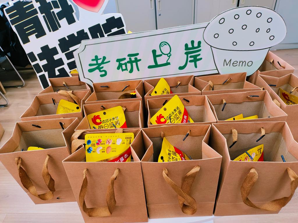 老师们分别在弘毅楼C区四楼大厅、图书馆等主要备考聚集区域,为在场的每一名员工送上了学院精心准备的考研助力礼包。李卉在询问了同学们的考试准备情况后,首先肯定了考研学子长时间的辛苦付出,叮嘱同学们要保持良好的身心状态,努力做到化压力为动力,争取以最饱满的状态积极迎接考研。