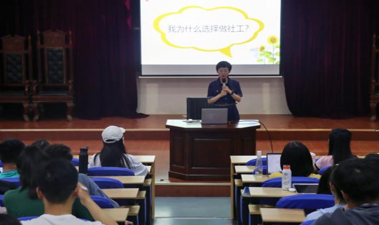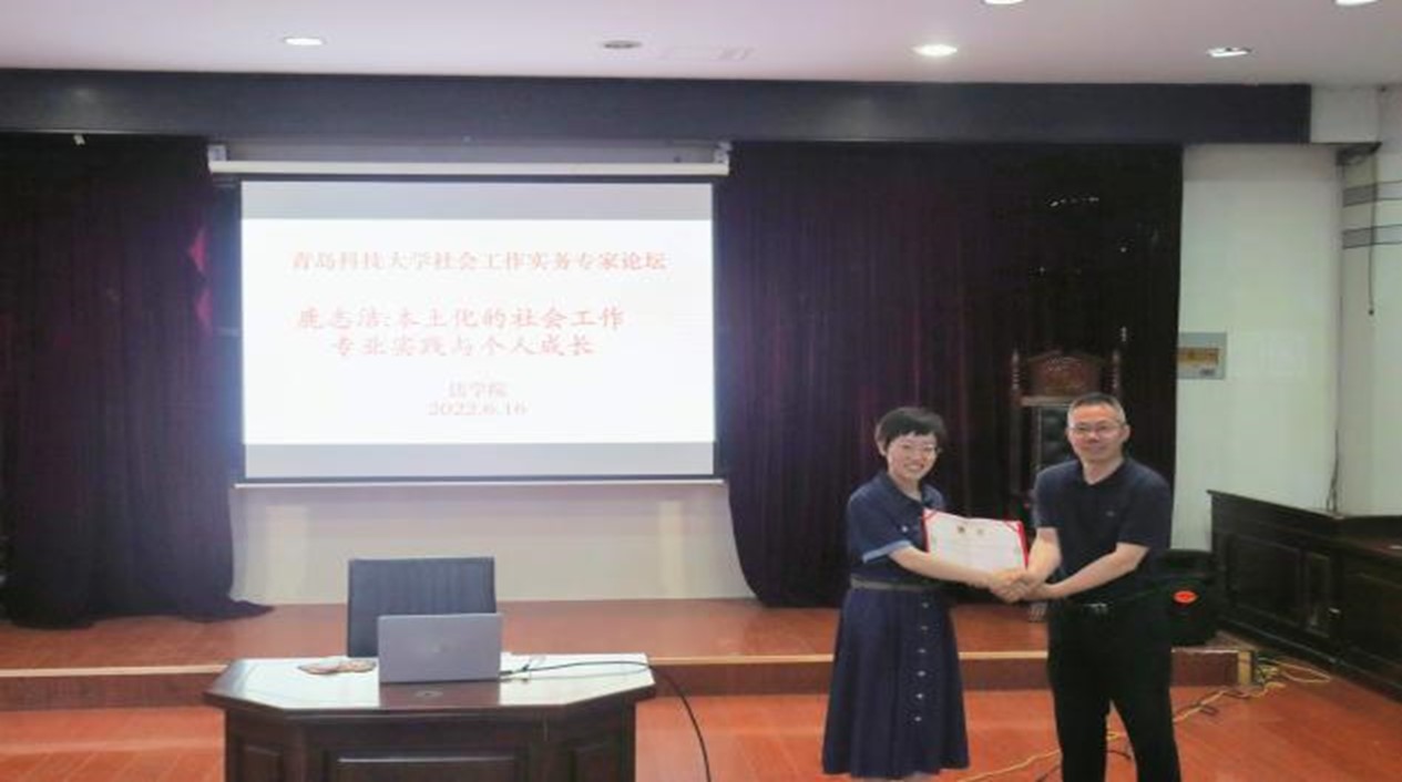 6月16日,太阳集团城8722在模拟法庭举办社会工作实务专家论坛——“本土化的社会工作专业实践与个人成长”。论坛邀请了“青岛拔尖人才”、“山东省优秀社会工作者”、青岛市崂山区社会工作协会秘书长鹿志洁作为本次论坛的主讲嘉宾。社会工作系部分教师以及全体本科生、研究生参加了论坛。