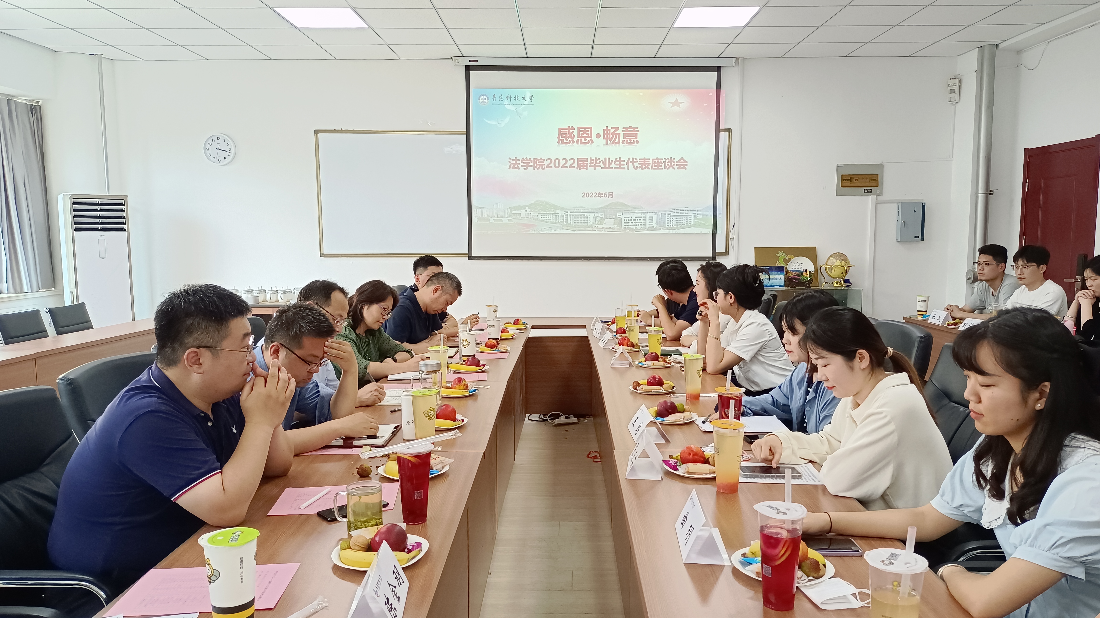【心怀感恩,共话成长】为上好2022届毕业生“最后一堂思政课”,助推学院高质量发展,6月17日下午,太阳集团城8722在弘毅楼c区307会议室召开2022届毕业生代表座谈会。毕业生代表们分享了校园生活的难忘回忆,交流了在校期间的学习成果、收获感悟,谈到了对未来工作、生活的期待,表达了对老师们的感谢以及对母校的眷恋之情,并对学院未来发展提出了自己的意见建议。学院领导老师认真听取了同学们的发言,结合自身的求学、求职、初入职场等经历和感受,为员工梳理思路、加油打气,并希望同学们在工作中长才干、练本领,做无愧于时代、无愧于人民、无愧于历史的时代新人。