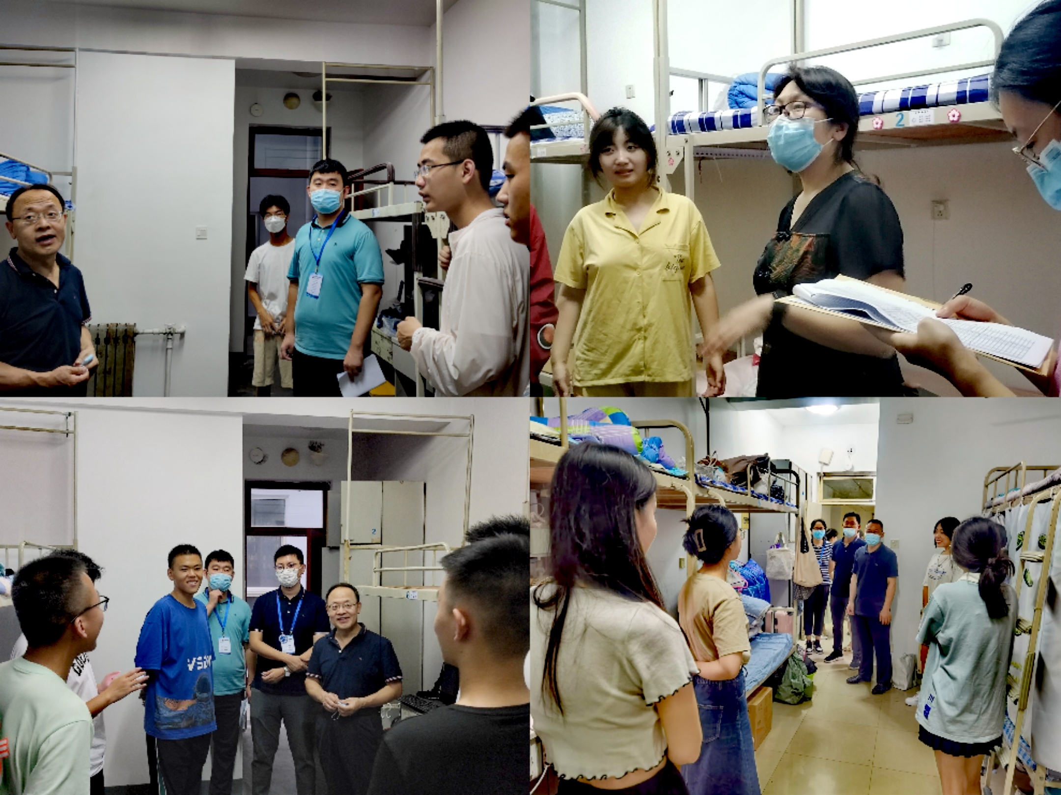 走访宿舍话相逢,关怀备至传真情。9月3日晚,学院领导、系主任和员工工作办公室全体辅导员走访了新生宿舍,向新生的到来表示欢迎,关心慰问新生入校后的住宿和生活保障情况,认真听取员工各方面的意见和建议,叮嘱新生要提高疫情防控意识,注重个人防护和宿舍环境卫生,鼓励新生尽快融入老员工活,合理安排时间,以饱满的热情投入到新学期的学习、生活中去,用实际行动向党的二十大献礼。