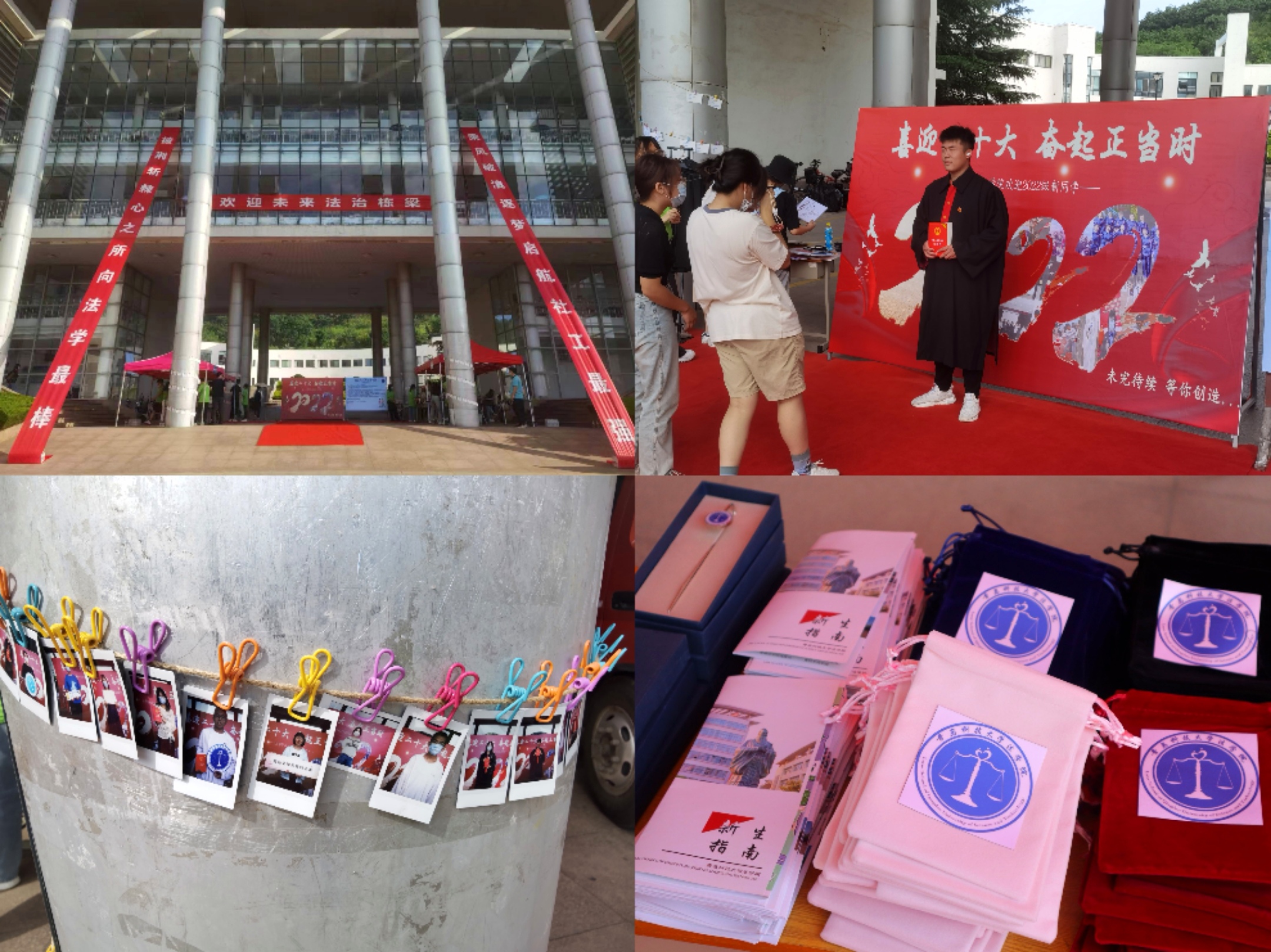 迎新活动满心意,专业属性显特色。迎新现场设置“喜迎二十大,奋起正当时”主题展板和赋有学院专业特色的《梦想合同书》,新生可驻足留影,与自己许下四年之约;工作人员用拍立得记录下新生的入学第一“刻”,在迎新结束后赠送给新生留作纪念;“智慧树”悬挂“应急知识卡”,卡片上粘贴有法学、社工热点词汇及释意,新生可即取即走,为专业学习预热;学院还为新生定制了专属胸牌、精美书签、实用锦囊和《新生指南》,增强了新生的融入感和归属感。新生们纷纷表示,学院简洁高效的报到流程、志愿者们细致周到的暖心服务,让他们感受到了太阳集团城8722大家庭的温暖,对今后大学的学习和生活充满了信心和期待。
