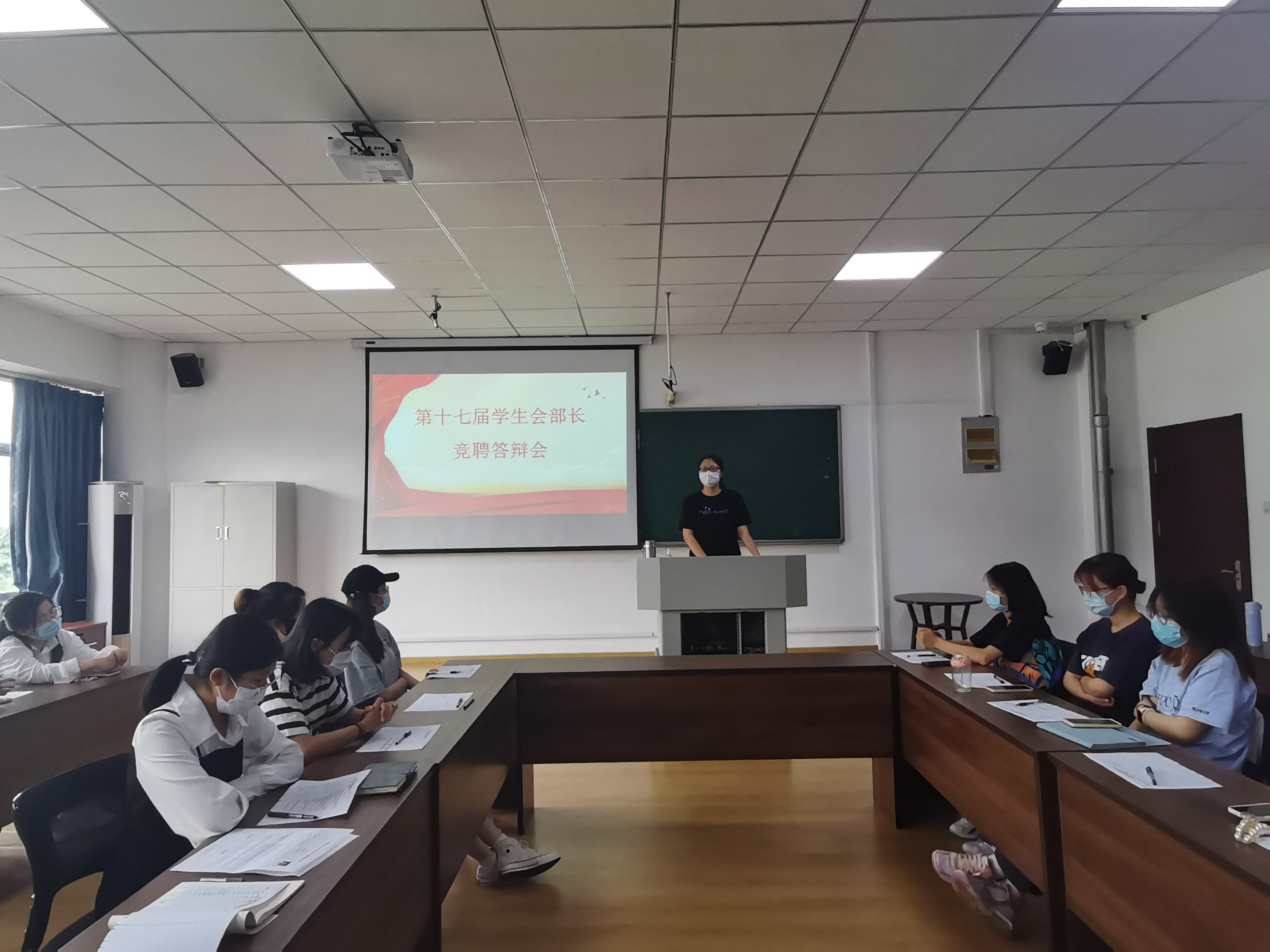 为进一步加强学院员工干部队伍建设,提高公司员工会自我服务、自我教育、自我管理、自我监督的能力,更好地为同学们服务,9月13日下午,公司员工会于弘毅楼C406举行了第十七届员工会部长竞聘答辩会。太阳集团城8722团委书记付继航,公司员工会秘书长、指导教师李怡然,辅导员王宇、王梦珂及第十六届员工会主席团和部长团出席了本次答辩会。