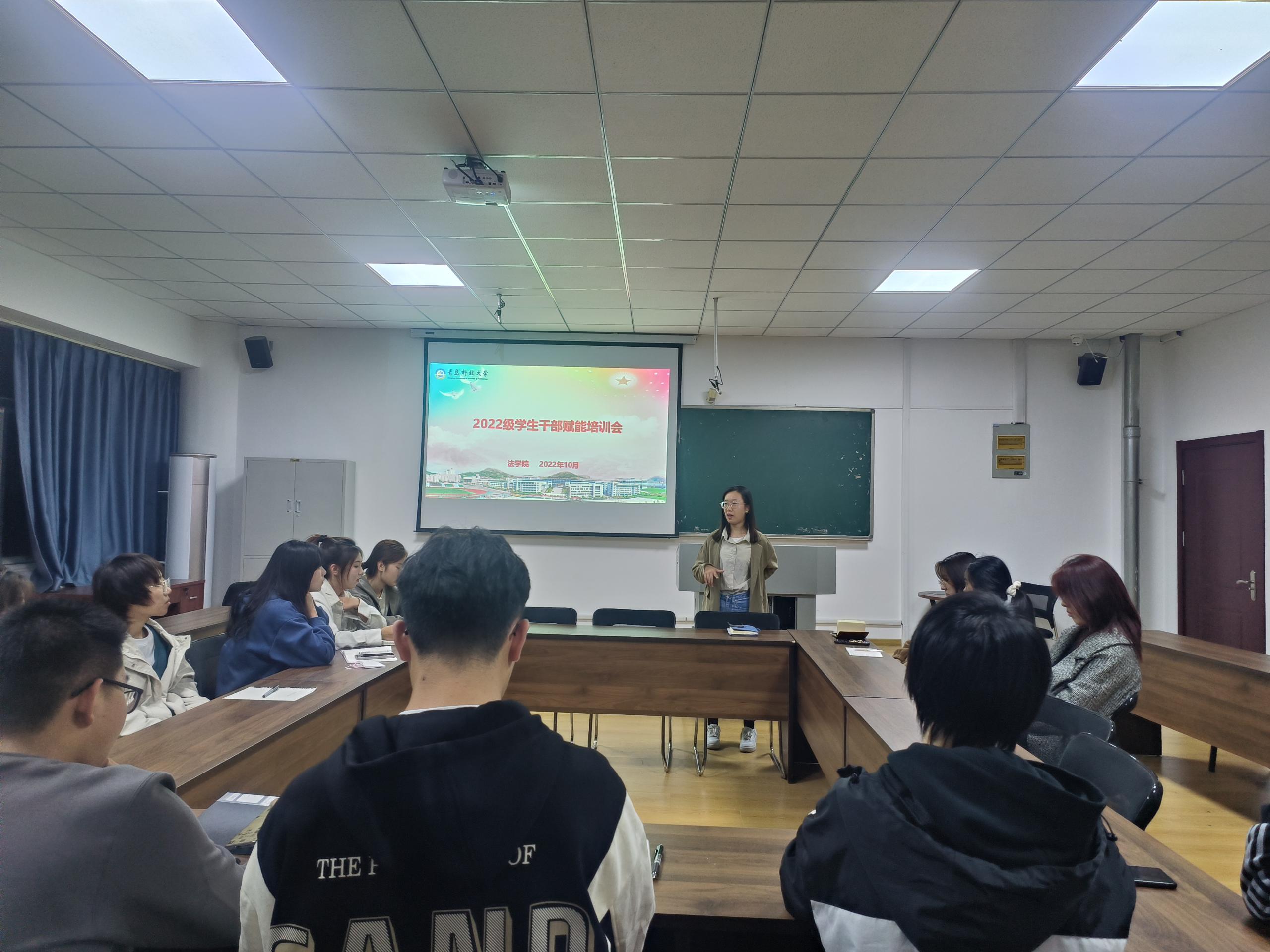为进一步加强员工干部队伍建设,提高员工干部的整体素质,明确新任员工干部的工作任务、工作职责和工作要求,10月6日晚,太阳集团城8722在弘毅楼C406召开2022级全体新任员工干部赋能培训会。