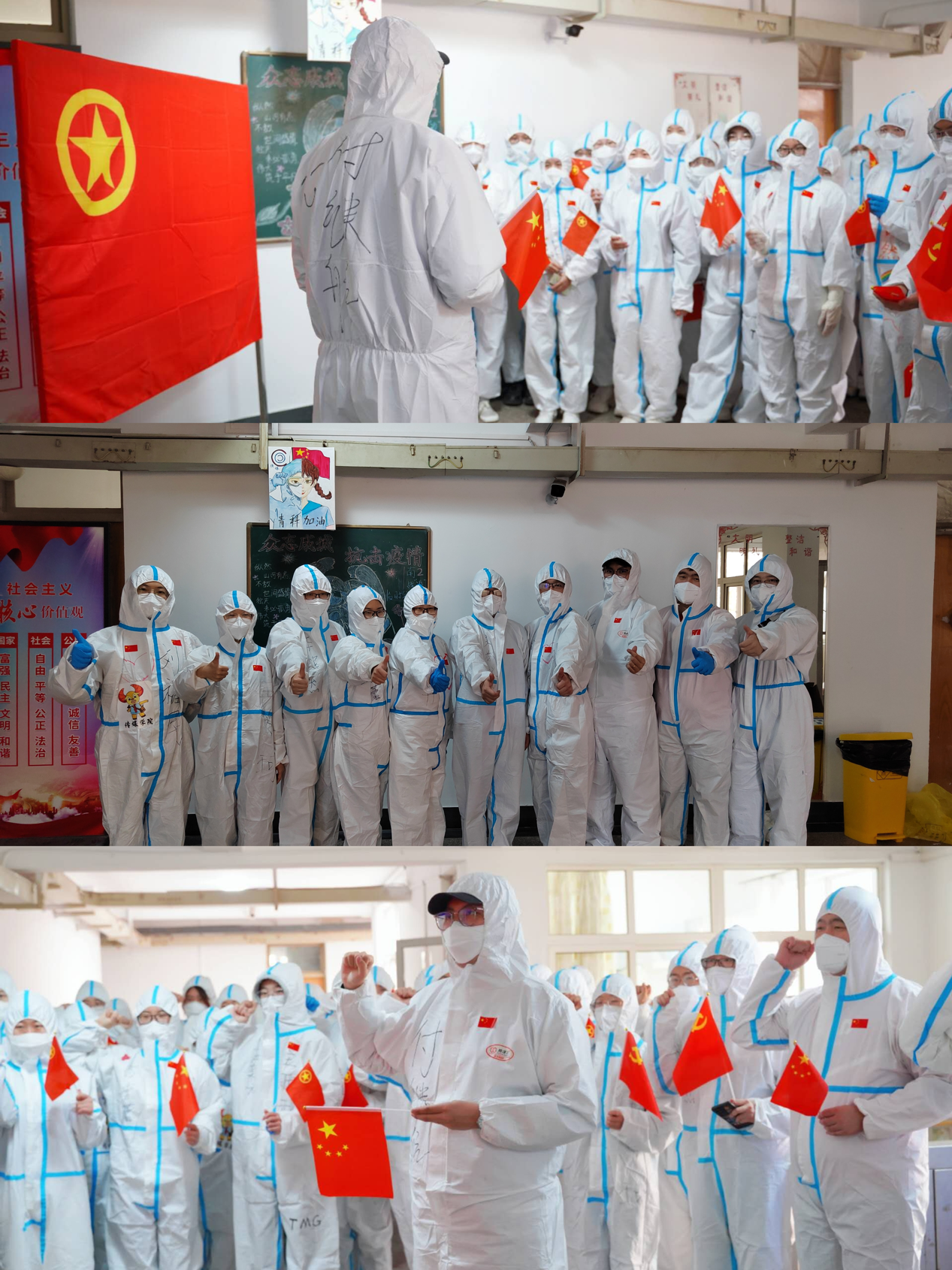 或许受到不理解,也许有过委屈,可能想过后退,可看到老师们永远秒回的信息、奔波不停的身影,我们安心;看到同学们的感谢,我们暖心;我们更有信心打赢这场战斗。向上向善,敢担当、能吃苦、肯奋斗。惟知跃进、惟知雄飞,面对一切挑战。