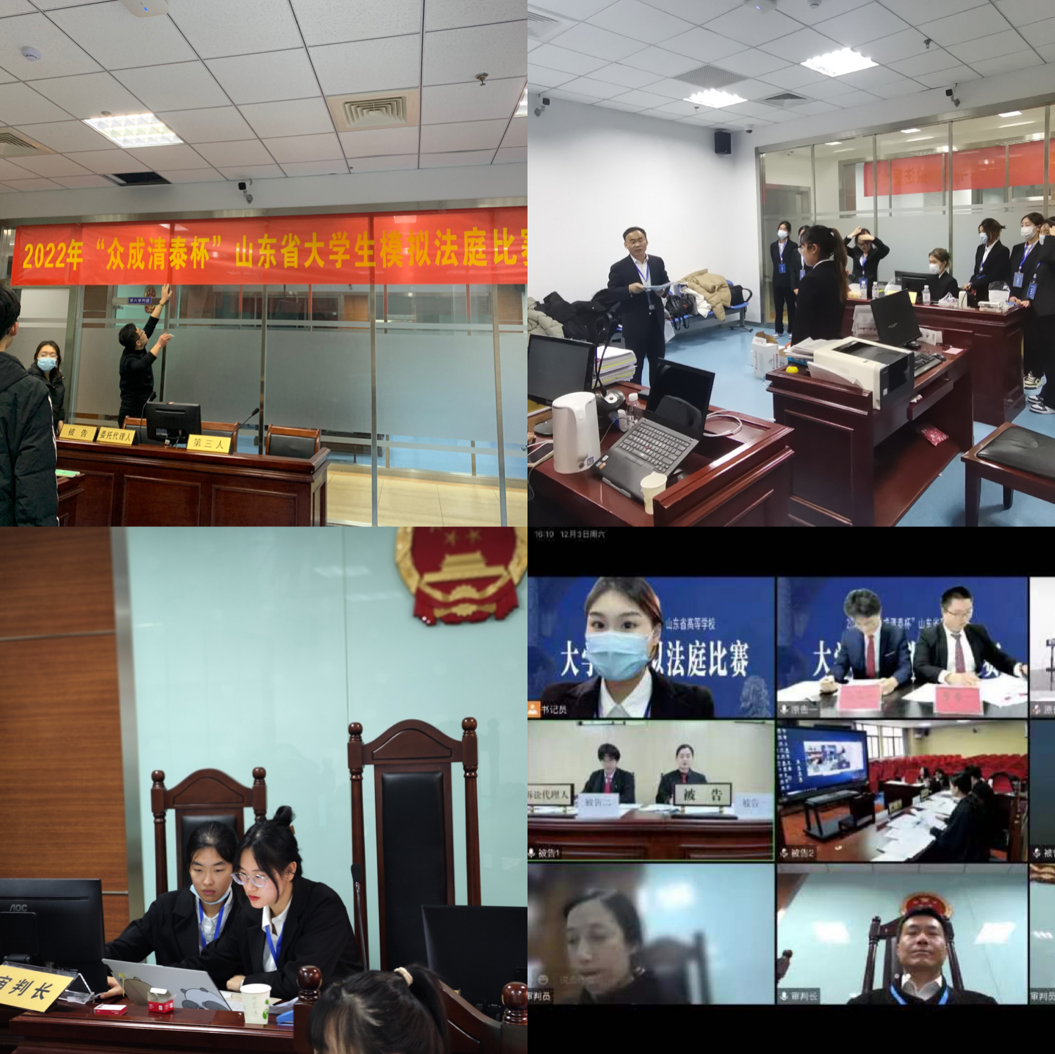 2022年12月4日,由太阳集团城8722承办的2022年“众成清泰杯”山东省高等学校老员工模拟法比赛在青岛落下帷幕。12月4日下午17:30,在青岛市崂山区人民法院举行了模拟法庭比赛总结表彰大会。