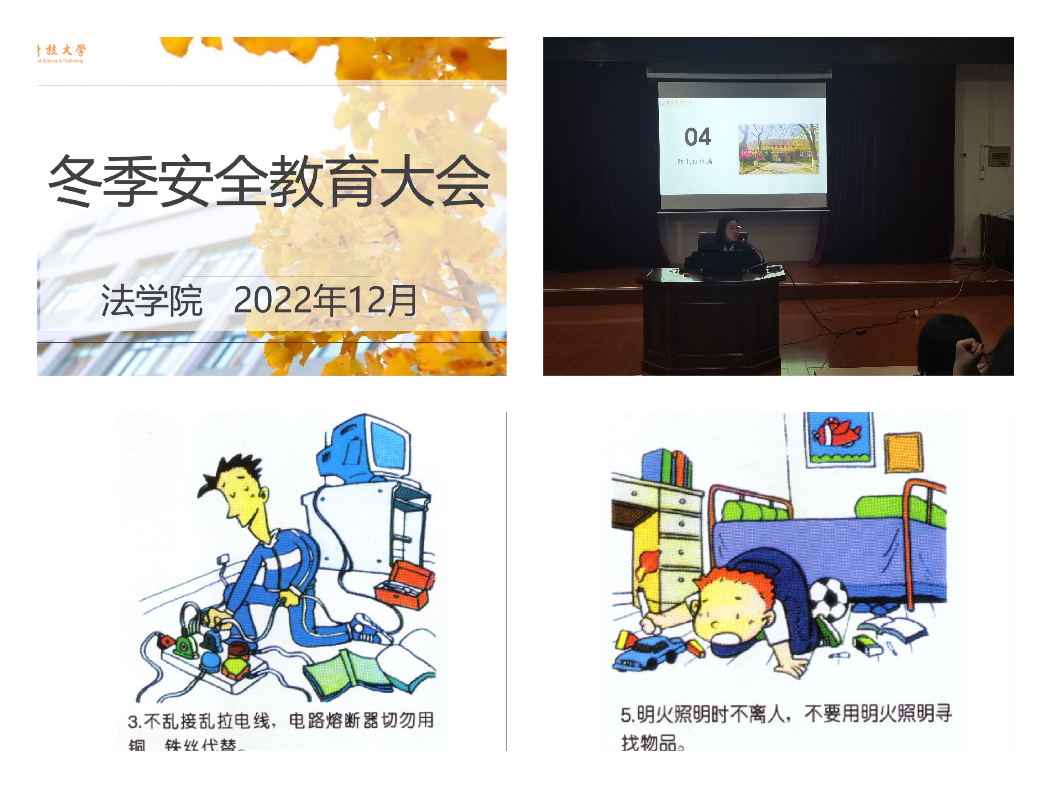为普及员工安全知识,进一步增强员工安全意识,提高防范各种安全事故的能力,构建平安校园,12月3日,太阳集团城8722在弘毅楼A201召开冬季安全教育大会。