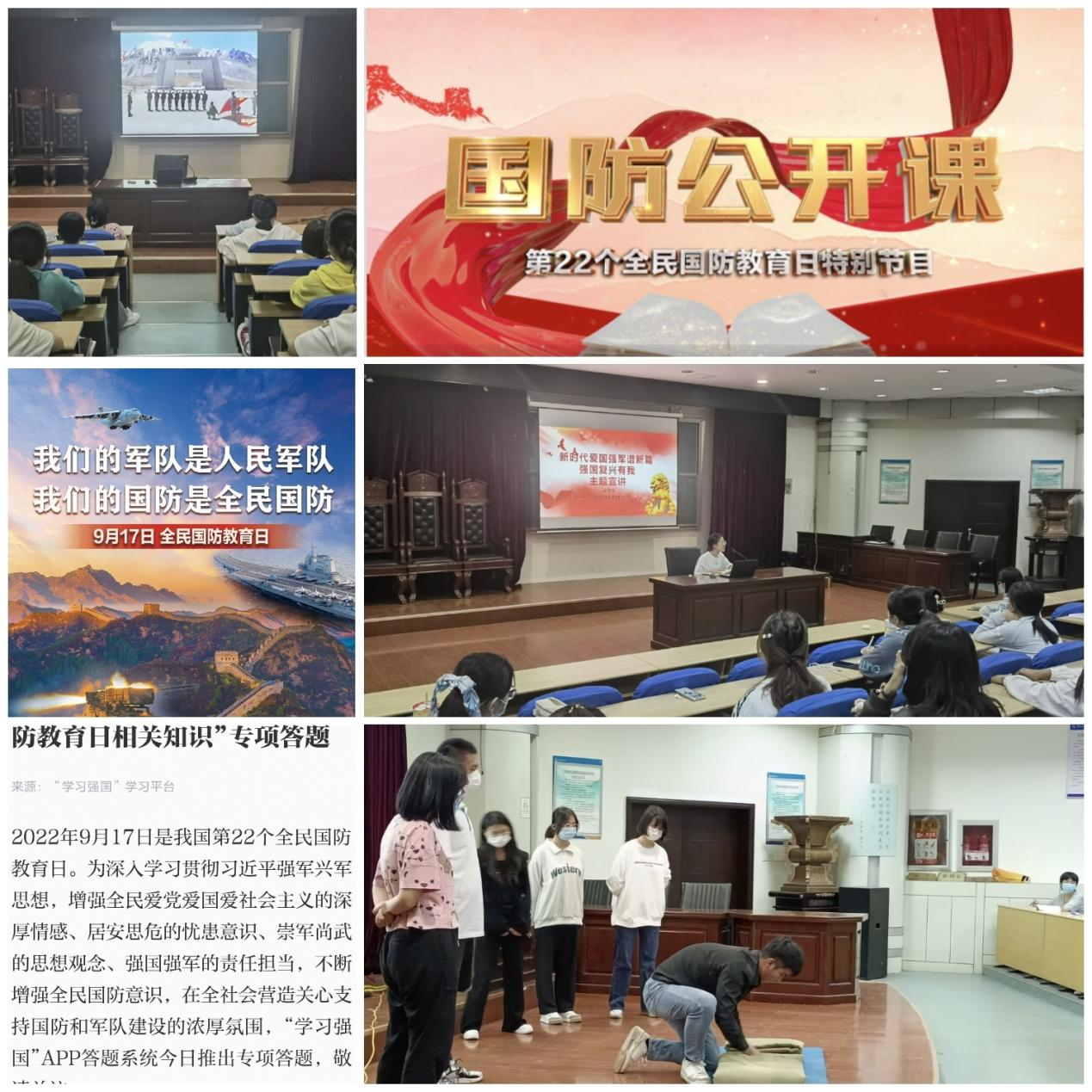 开展宣传教育活动 太阳集团城8722充分结合“强国复兴有我”宣传教育活动,组织员工观看全国首档全民国防教育日特别节目《国防公开课》,普及学习《国防法》《国防教育法》《反分裂国家法》等国防法律法规,积极参与“学习强国”APP中“全民国防教育日相关知识”专项答题,不断提高员工综合国防素质,筑牢员工拒腐防变的思想根基。