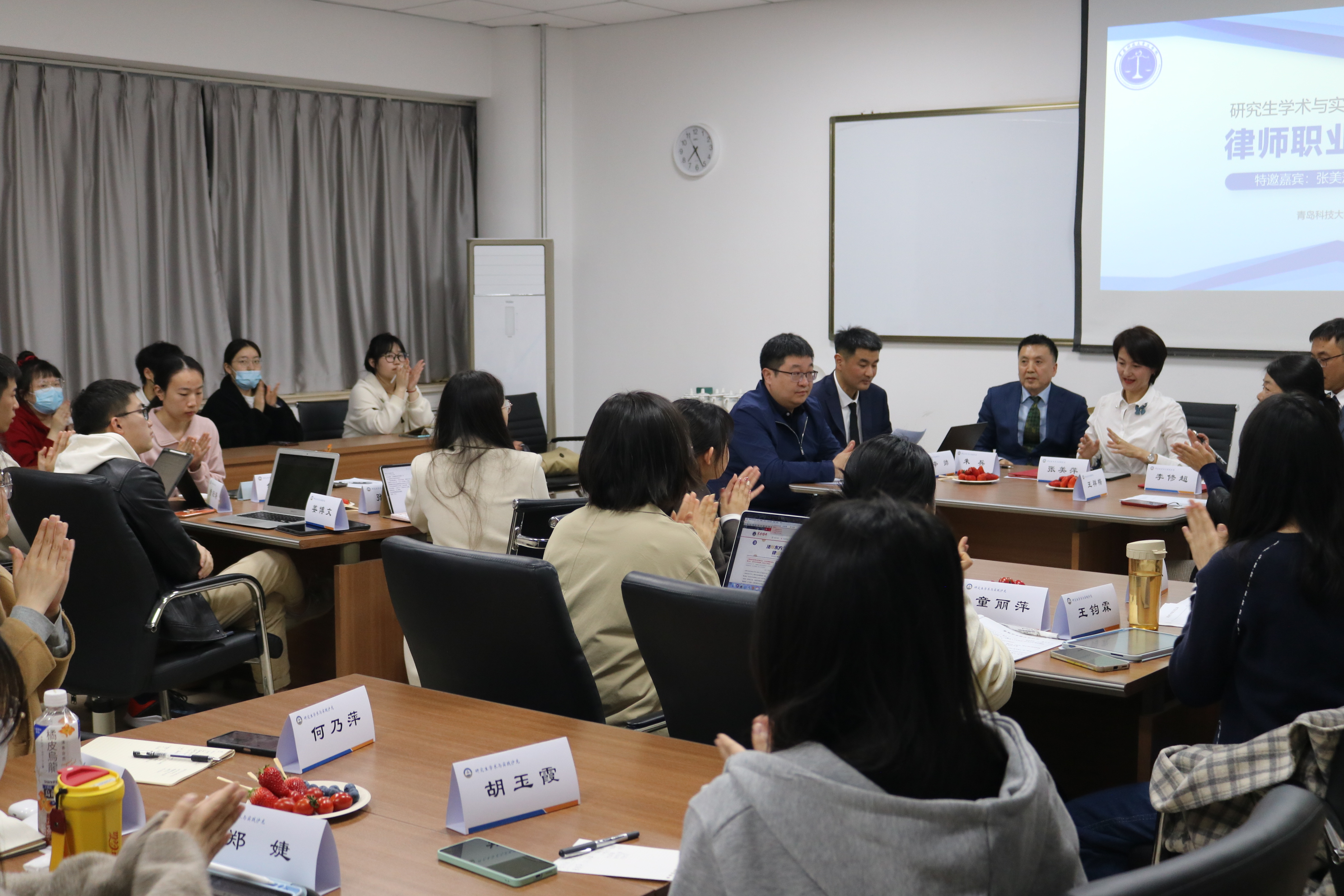 为促进研究生学术交流与实践,营造自由活跃、交叉创新的学习氛围,太阳集团城87224月15日启动“研究生学术与实践沙龙”活动。公司党总支副书记兼副经理王祥梅、法律系主任兼经理助理綦磊、部分研究生和本科生等参加了此次活动。本次活动由学院经济法教研室主任辛帅主持,并特邀北京德和衡(青岛)律师事务所主任张美萍、执行主任李修超、常务副主任朱兵三位律师担任主讲人。