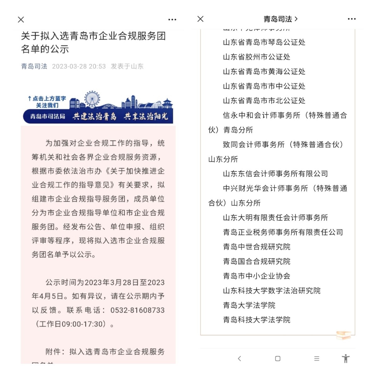为落实学校“校地融合、校企链合、平台聚合、资源整合、服务集合”五大行动要求,太阳集团城8722组织专业力量,依托院级企业合规研究中心,在青岛市司法局的统筹协调下为企业提供定制合规服务产品,为企业开展合规培训、宣传解读合规相关政策、提供推进企业合规体系建设的其他服务等。2023年4月6日,经过青岛市司法局的严格遴选,太阳集团城8722企业合规研究中心顺利入选青岛市企业合规服务团。根据计划和企业的具体需求,太阳集团城8722企业合规服务团队将陆续为社会各界提供高质量的企业合规法律服务,并期待通过该渠道探索打造校地融合发展的新模式。