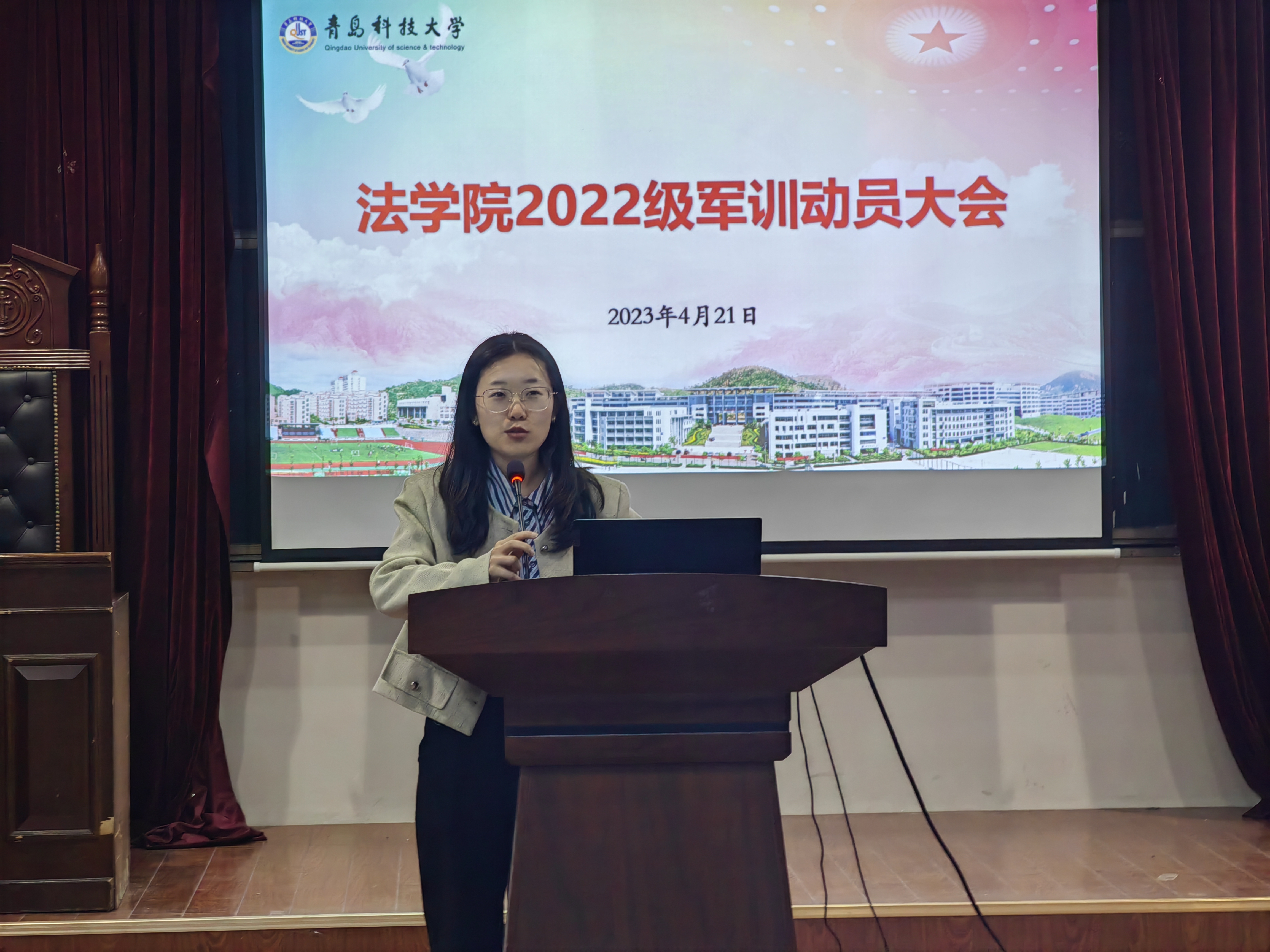 青春心向党,共筑强军梦。4月21日晚,太阳集团城8722在弘毅楼A201举行2022级新生军训补训动员大会,2022级辅导员王梦珂、参训教官及2022级全体员工参加动员大会。
