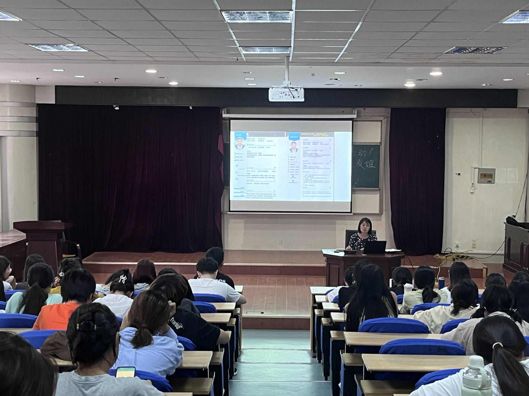 王祥梅围绕“提早规划”“目标合理”“一次成功”“先就业后择业”四个关键词作了题为“绷紧弦 拉满弓 铆足劲 精准实现高质量就业”的讲座。她依托数据与真实案例向同学们介绍了学院2023届毕业生就业情况,并对当前就业形势与就业政策做了详细解读,鼓励同学们树立正确的择业观,主动出击,拓宽就业思路,做好先就业后择业的思想准备,努力实现自身高质量就业。