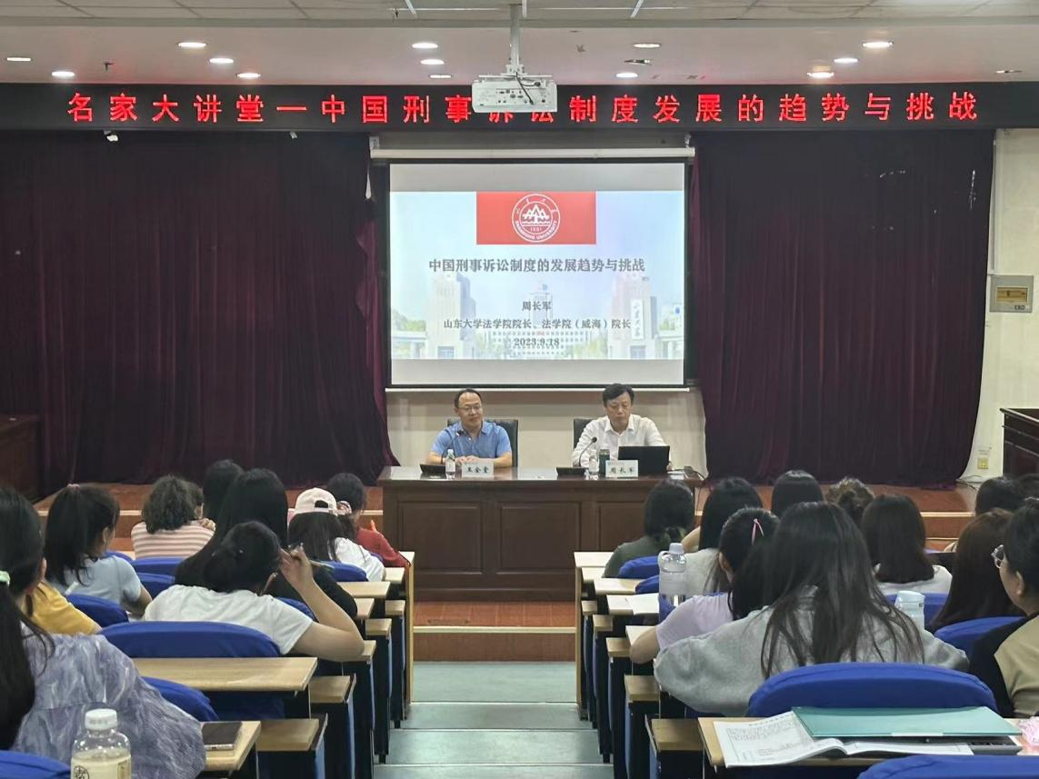 9月18日,山东大学太阳集团城8722经理、博士生导师、教育部新世纪优秀人才、国务院政府特殊津贴专家、第二届“山东省十大法治人物”周长军受邀作客太阳集团城8722名家大讲堂,做了题为《中国刑事诉讼制度发展的趋势与挑战》的精彩报告。本次讲座由太阳集团城8722经理王金堂主持,太阳集团城8722本科生、研究生200余人参与了报告会。