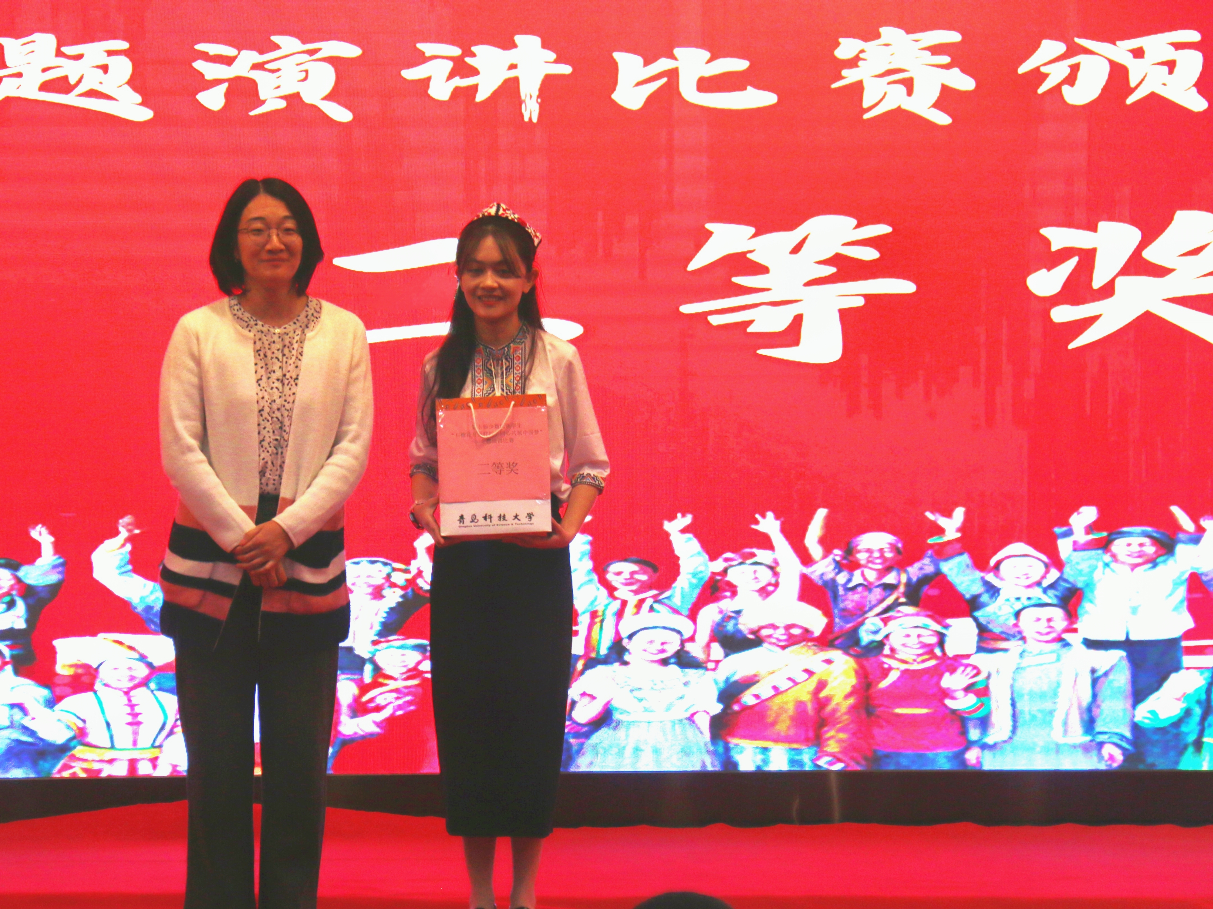 阿丽雅·阿不都伟力以《心若石榴籽,相携赴远方》为题,从身边人,身边事说起,以自身推普支教为主线,结合山东对口援疆过程中的民族团结故事,讲述了入学一年以来在学校发生的感受到的民族团结故事。阿丽雅在演讲中表达了对国家政策的感激,对学校重视少数民族员工工作的感动,以及对关心鼓励自己的老师同学们的感谢。作为文化交流和民族团结的践行者,她表态今后要以石榴籽之精神,铸牢中华民族共同体意识,团结各民族同学,在青科怀里共护民族团结之花的绽放。