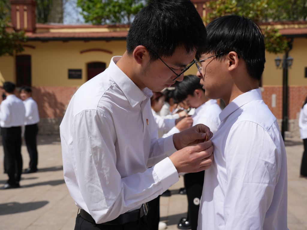 入团仪式在庄严的国歌声中拉开帷幕。经管学院员工党员马庆万宣读了本次新发展团员名单。经团组织培养考察,张然祎、李旭、闫广振等15名先进青年符合团员要求,被批准入团。党员代表为新团员们佩戴团徽并颁发团章。