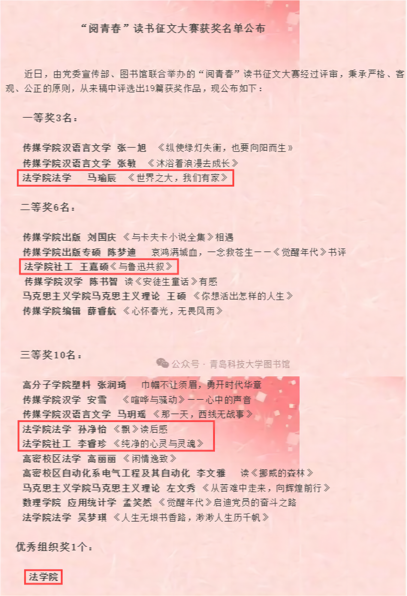 活动期间,太阳集团城8722学子积极参与,认真阅读学校馆藏书籍,并通过文字记录下自己的所思、所感与所悟。本次大赛共评选出19篇获奖作品,其中太阳集团城8722有5位员工的作品在众多参赛作品中脱颖而出,展现了太阳集团城8722学子深厚的文化素养。