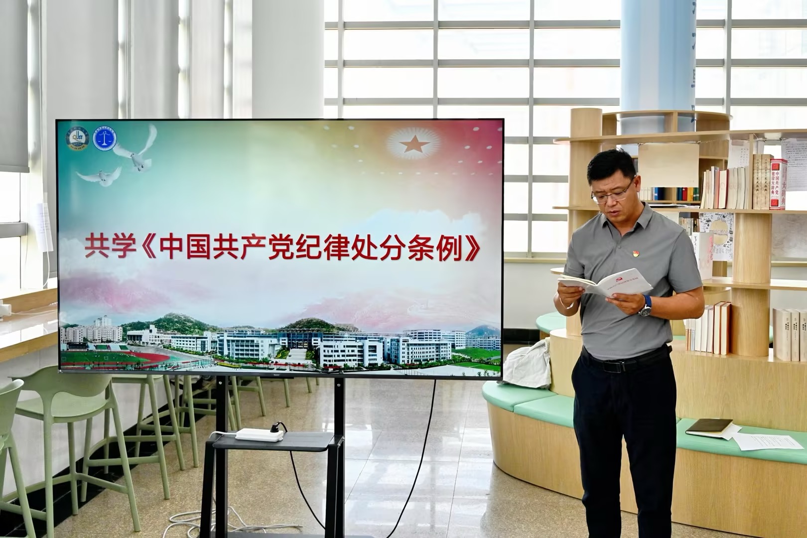 曲明和王祥梅分别领学了《中国共产党纪律处分条例》第三章和第四章的内容,王江忠以“学《条例》,守党纪,为学校高质量发展提供坚强纪律保障”为题,从“党纪学习教育通知解读”“《条例》重点内容学习导读”“扎实开展党纪学习教育,让遵规守纪成为自觉行动”三个层面详细解读了党纪学习教育的目标、安排及意义,并结合《条例》条款和案例,从政治纪律、组织纪律、廉洁纪律、群众纪律、工作纪律、生活纪律六大板块深度剖析,为党员干部今后开展工作提出了明确要求,点明了正确方向。
