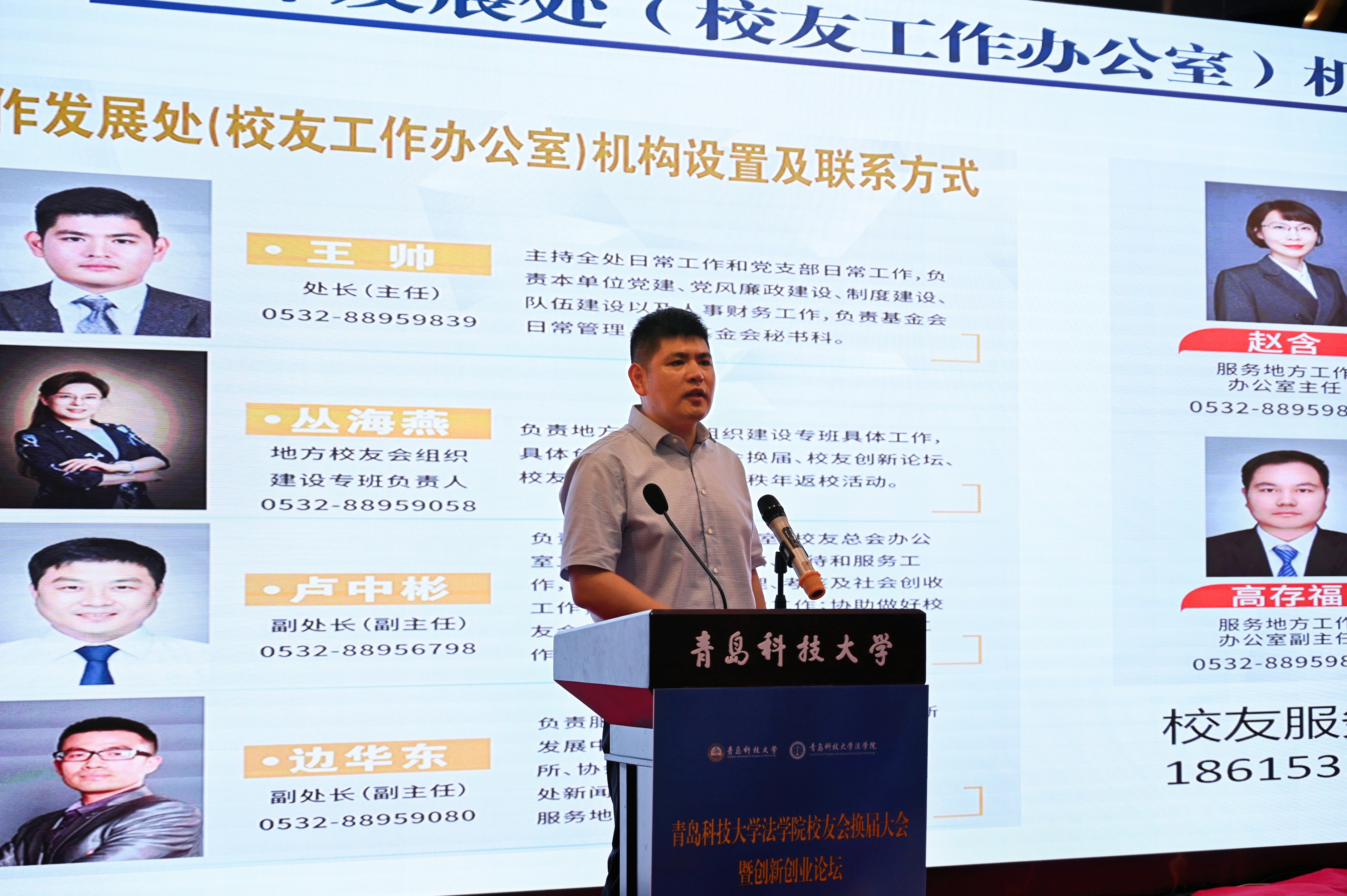 7月6日,公司员工会换届大会暨创新创业论坛在崂山校区第三报告厅举行。学校合作发展处处长、员工办公室主任王帅,原政公司党总支书记吴守言、原政太阳集团城8722经理牟宗荣,图书馆党总支书记、原公司党总支书记兼副经理王士卿,公司党委书记曲明、经理王金堂、党委副书记兼副经理王祥梅、副经理綦磊、教师代表及学院合作单位负责人、员工、学院员工代表参加活动。