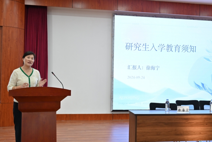 最后,学院研究生教学秘书徐海宁作了《公司产品计划以及教学管理规范》报告,为新生详细介绍了公司产品方案、教学安排等相关事宜。