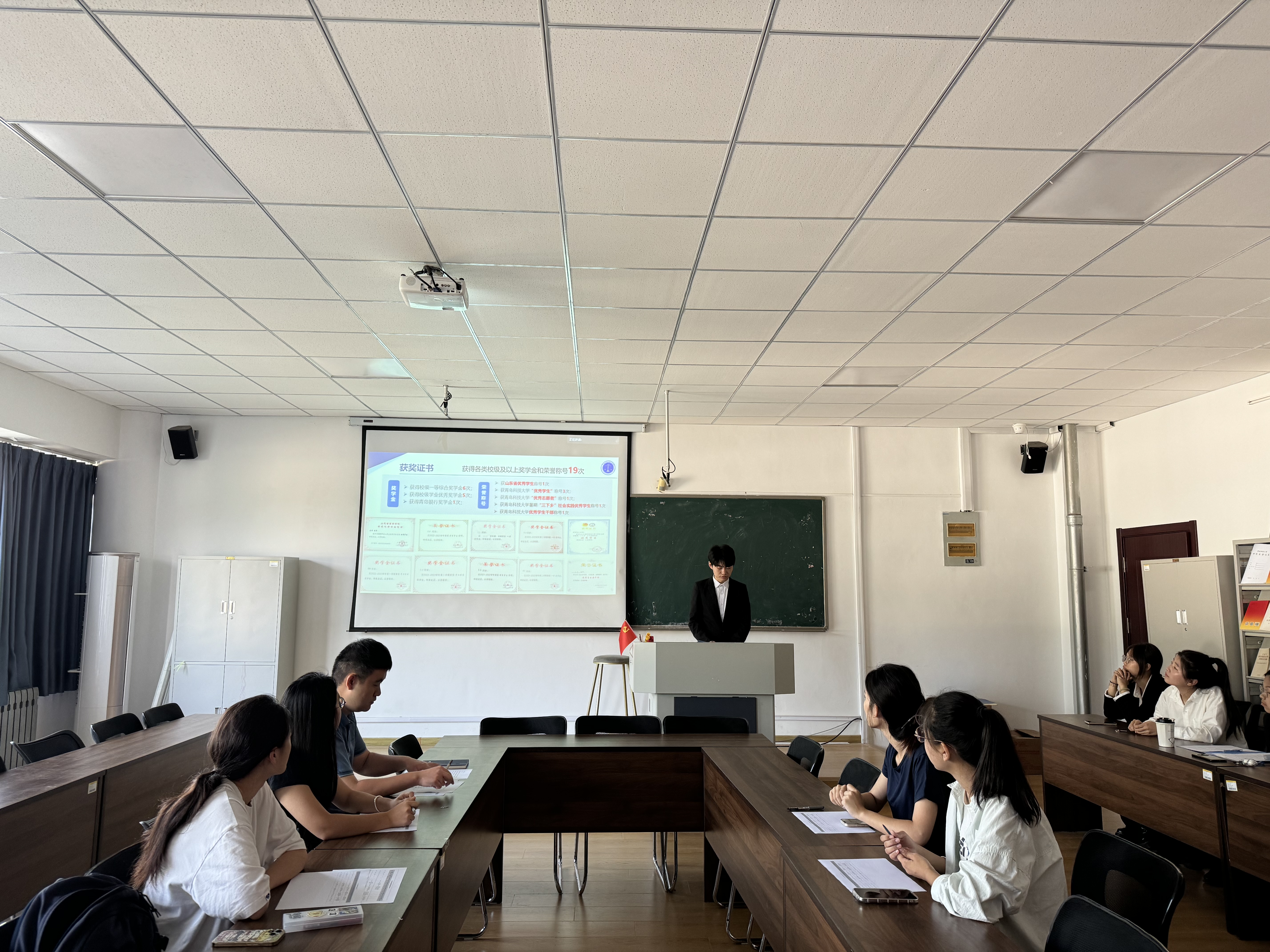 答辩正式开始前,王宇就国家奖学金、省政府奖学金评选答辩会相关规则作出说明。经过前期的个人申报和学院初审,共计3名国奖候选人、10名省奖候选人入围本次答辩环节。各位候选人从政治思想、学业成绩、获奖荣誉和社会实践等方面进行了陈述,内容充实、过程精彩。本次答辩会秉承公平、公正、公开的原则,结合候选人申请材料、答辩表现等情况进行了综合评议。