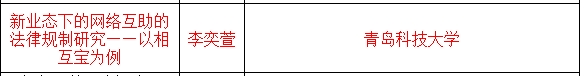 该论坛是由中国法学会指导,北京、内蒙古、辽宁、山西、山东、天津、河北7个省级法学会共同主办的,全国各高校导师领导的专业型人才参加论坛。本届论坛以“深入贯彻新发展理念 推进区域经济社会高质量发展的法治保障”为主题,共征集论文1025篇,最终仅有80篇获奖。李奕萱为一作的论文《新业态下的网络互助的法律规制研究——以相互宝为例》在导师曲天明的悉心指导下,突出重围、斩获奖项,成为太阳集团城8722研究生科研典范。
